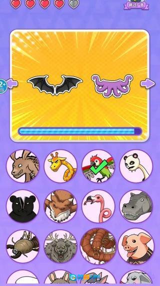 每一关的界面会清晰呈现三条关于“疯狂动物”的文字提示,以及若干可供选择的卡通动物头像。