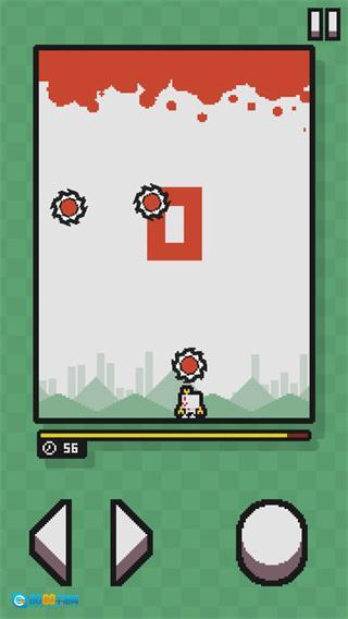 进入游戏后的画面如图所示,玩家需要操控角色进行跳跃,以此躲避从上方落下的锯片。