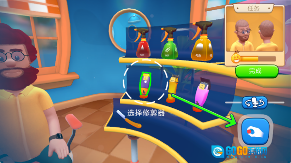 找到适合理发的工具,每个步骤对应的道具各不相同,玩家得清楚所有道具的用途。