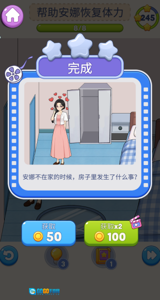 收集齐全所有线索后即可完成当前关卡闯关,解锁剧情片段与金币奖励,开启后续新的解谜挑战。