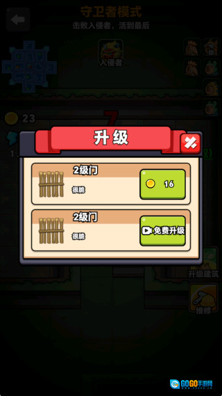 消耗金币升级门,提升门的防御能力,阻止怪物击碎门,从而顺利完成防守任务。