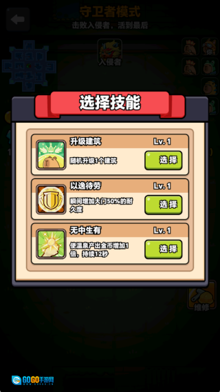 防守开始前需挑选技能,不同技能有着各异的效果,玩家得熟练运用这些技能来开展防守。