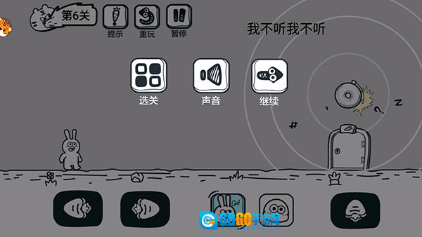 点击上方的暂停按钮就能调出游戏菜单,你可以在这里调整音量或者回到选关界面。