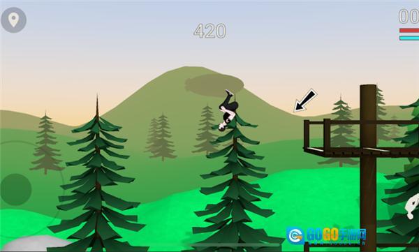 2、分阶段动作控制:起跳、转身、着陆需通过点击屏幕协调完成,类似《QWOP》的节奏感设计。玩家需精准计算初速度、旋转角度与平衡点,避免失败后的夸张物理反馈(如角色四肢扭曲坠地)。
