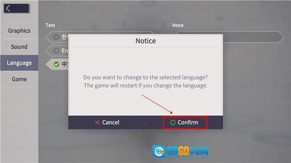 5、在弹出来的页面中选择下方的确认,等待游戏重启即可完成设置。