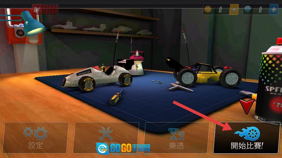 1、在车库界面点击【開始比賽!】,进入赛道选择页面。