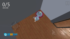 2、通过虚拟摇杆控制移动,在沙发、桌子等区域进行翻找,一旦发现悠君就靠近并完成收集。