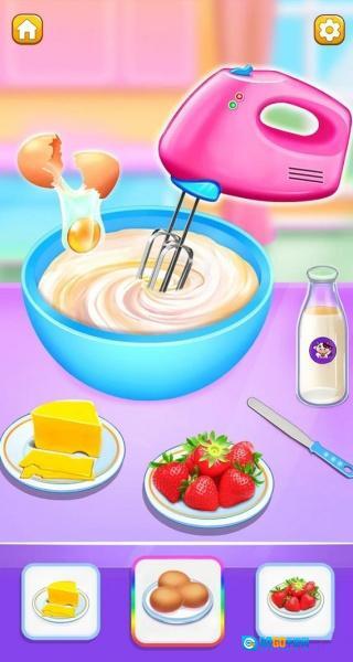 2. 这款游戏模拟了完整的蛋糕制作过程,涵盖了从食材准备、蛋糕烘烤,到奶油裱花以及最后的装饰环节。