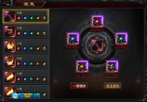 1、在游戏里,玩家可通过主界面的宝玉图标进入宝玉界面进行镶嵌操作。宝玉共有5种类型,且划分为7个品级,依次为下品、中品、上品、绝品、后天、先天、珍稀。通常来说,品级越高的宝玉,能为角色带来的属性加成也就越显著。而高级别的宝玉需要通过消耗低品级宝玉合成获取,低品级宝玉则可以通过打怪掉落以及参与活动等方式得到。