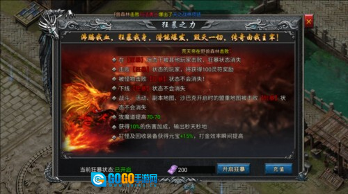 3. 成功击杀处于狂暴之力状态的玩家,可获得100灵符的奖励;而被击败的玩家,其狂暴之力状态将随之消失,但若是被怪物击杀,则不会触发该状态消失的效果。4. 玩家下线后,自身的狂暴之力状态并不会因此消失。