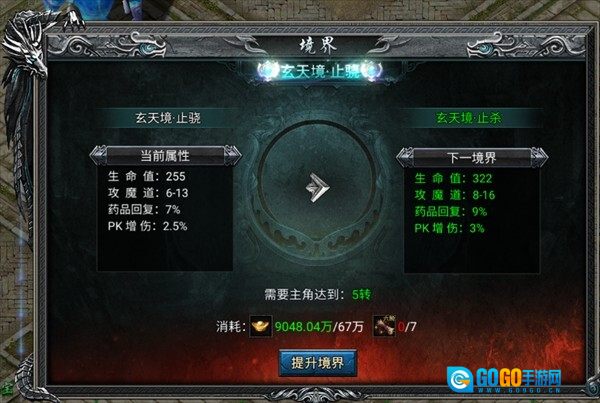 1、境界系统:此系统可有效增强玩家的生命值、攻魔道等属性。玩家既能前往盟重地图的特定NPC处完成境界晋升,也能借助界面操作实现升阶。提升境界需用到境界卷轴,这类卷轴可通过战斗、挂机副本等途径获取,若有多余卷轴,还能将其合成以冲击更高境界。