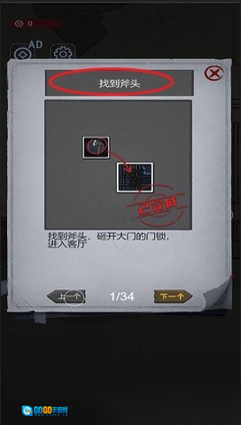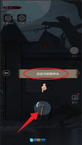 4. 提示会告知你游戏的操作步骤,就像图里显示的“点击可拾取斧头”这样的例子