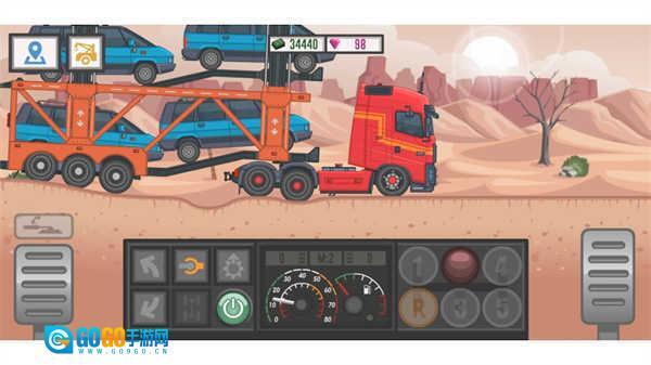支持自定义卡车外观和性能改装,玩家可以通过赚取金币来升级引擎、轮胎以及其他配件,提升运输效率。