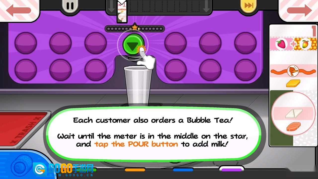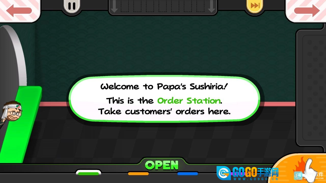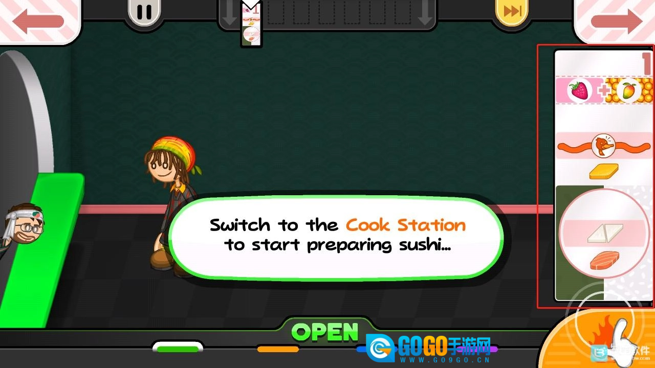 4、游戏会引导你熟悉寿司店的基础操作,点击右下角的提示按钮,就能进入订单接待区域。