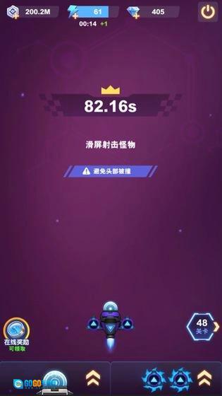 2、设计了无尽关卡,巅峰对决正等待你的参与,你可以自由改造战机的外观和性能,从而不断提升自己的段位水平;
