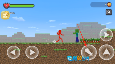 2、进入关卡后,通过左侧的箭头按钮操控小红人左右移动;若遇到绿色僵尸,点击右侧的剑形按钮发起攻击。需留意躲避僵尸的攻击,一旦血条耗尽便会失败。要灵活调整走位并及时出刀,击败僵尸后继续向前推进关卡。