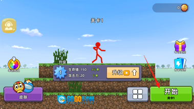 1、进入关卡1的准备界面后,先查看小红人的各项属性,比如生命值、攻击力这些基础数值。要是想让它变得更强,就点击升级按钮,消耗金币来提升它的能力值。等你觉得当前属性已经足够应对关卡挑战时,点击开始按钮,小红人就会进入关卡,和里面的怪物展开战斗。