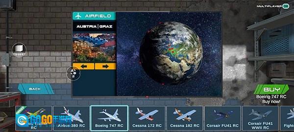 解锁机场与任务。完成一个任务即可解锁下一个。每个任务还可通过随机设置起始位置重新飞行。