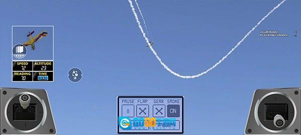 进入游戏后,左下角的按钮用于操控飞机的前进方向与飞行轨迹,右下角的按钮则负责控制飞机的上升高度等相关操作。