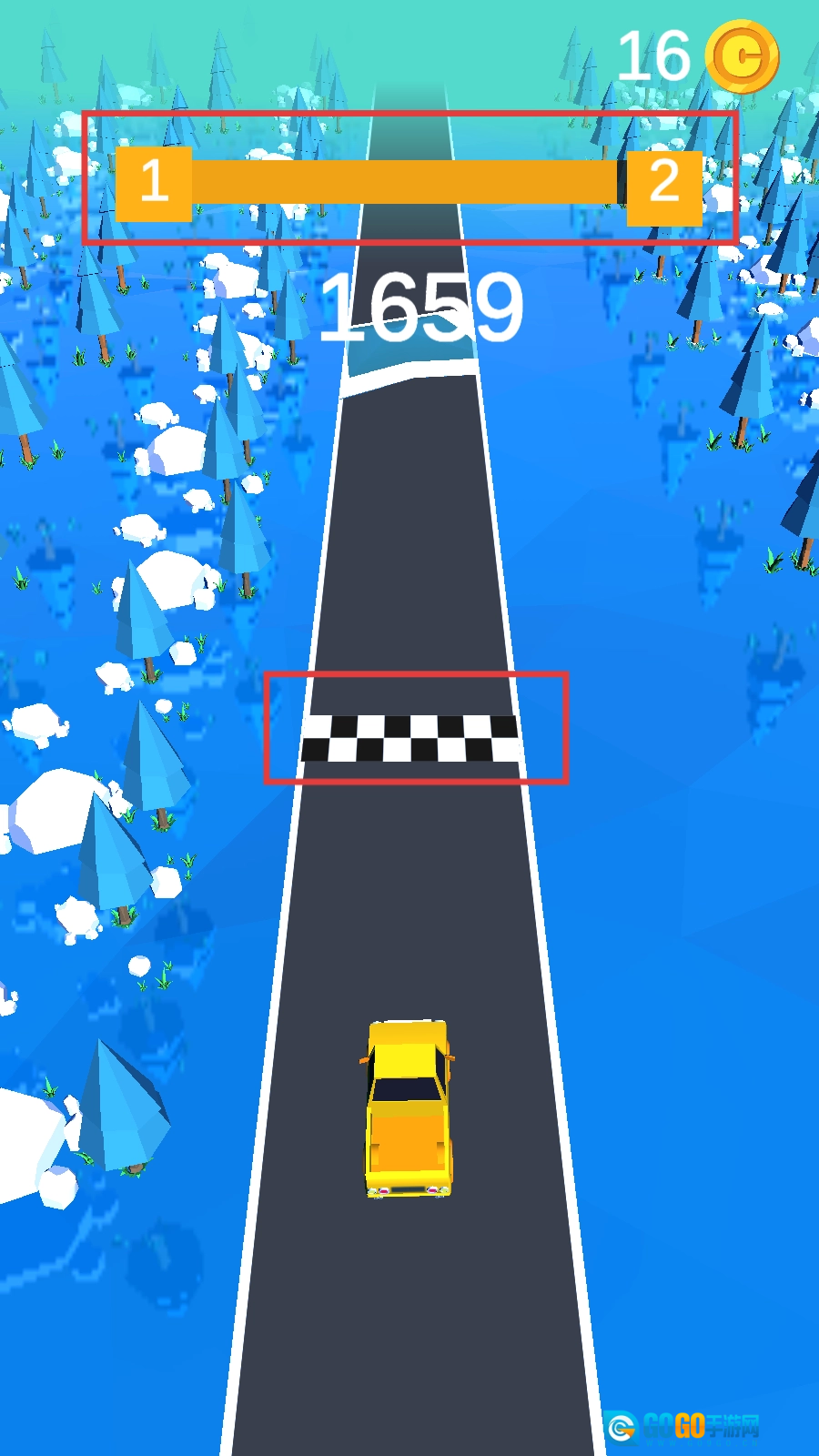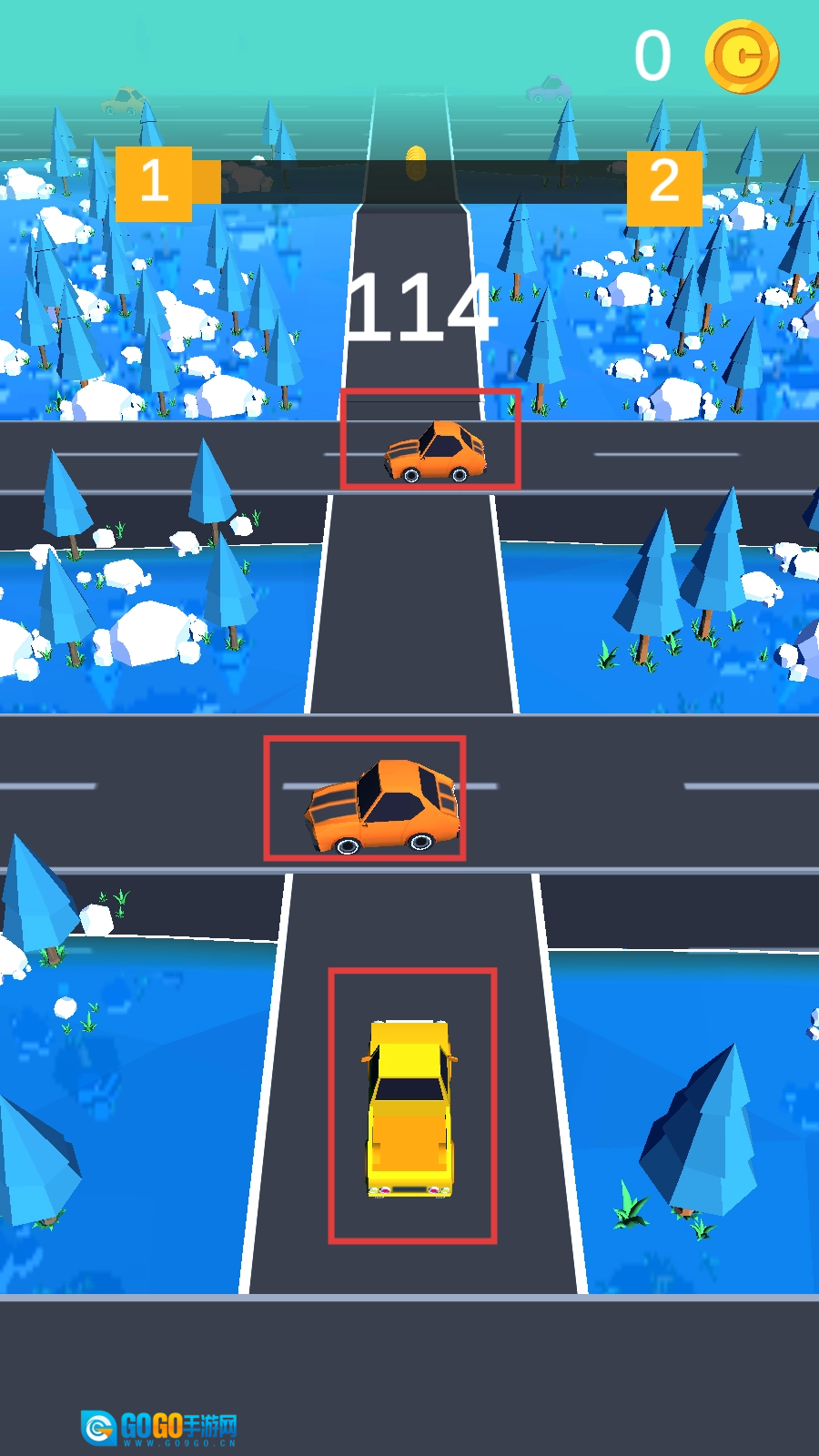 长按屏幕可以让黄色小车前行,遇到橙色车辆时,松手停车避让,不要被它们撞下车道了。