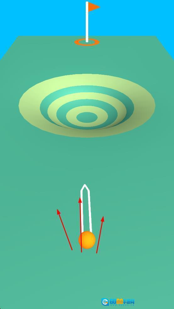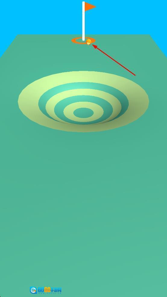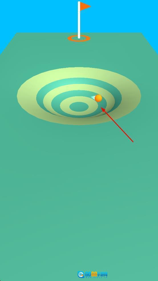 发射高尔夫球后,球会按照特定轨迹滚动,途经设有同心圆的区域,最终目标是使球成功落入球洞,以此为完成关卡任务筑牢基础。
