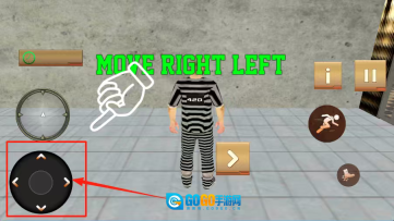 4、进入游戏操作界面后,左下角的摇杆可用来操控角色移动,右侧设有跑步与蹲下按钮。游戏时要留意避开警察的视线,灵活躲避他们的追捕。