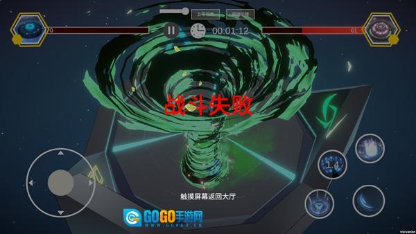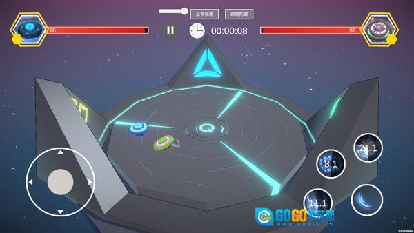 5、玩家能够借助左侧的轮盘操控陀螺的移动,右侧的按键则是用于释放技能的。