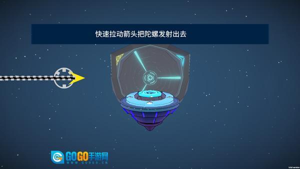 4、进入游戏如图,快速拉动箭头把陀螺发射出去;