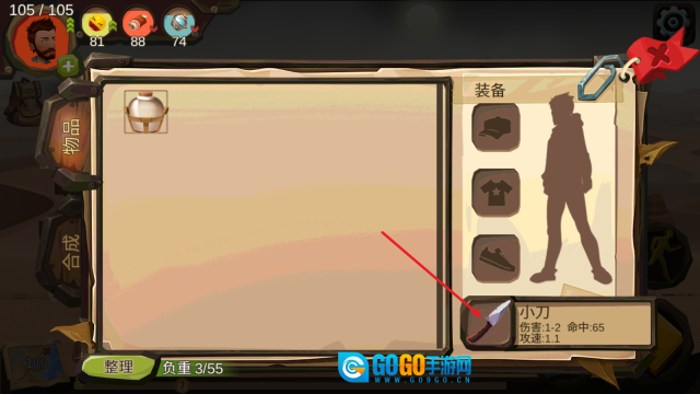4、举个例子,在这里,我们通过翻找事件获得了一把小刀,点开背包后就能把它装备上。