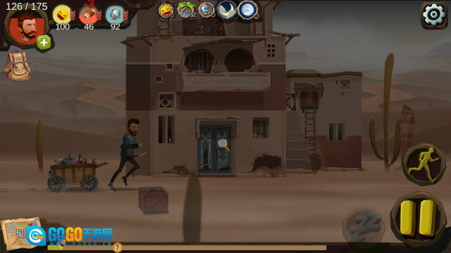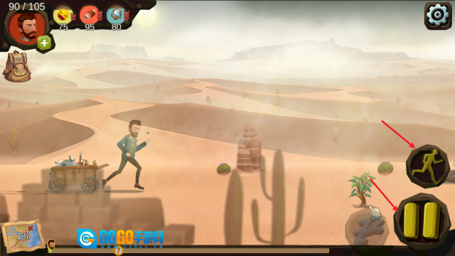 2、历经一段过程动画后,正式进入游戏。在游戏里,人物会自动向前行进,通过右侧操作可实现暂停或切换至跑步状态。