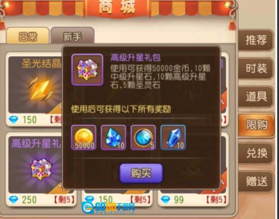 另外还有个省钱的小窍门:从商城进入限购页面,找到高级升星礼包。