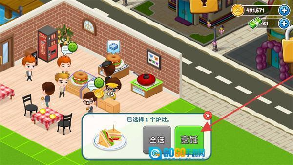 选定1个炉灶后,点击【烹饪】按钮,即可启动【火腿三明治】的制作流程。
