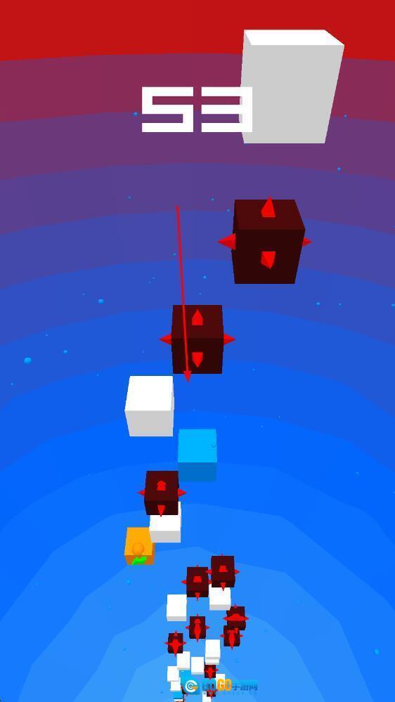 2、随着关卡不断推进,场景的布局会愈发复杂,白色方块的位置也变得更为棘手,这就要求玩家精准把握点击时机,操控小球巧妙跳跃,在避开各类障碍的同时,精准地击中目标。