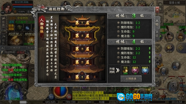 4、超级防御:升级需消耗元宝、血脉丹与炼体丹,每提升一层都能获取大量防御属性。
