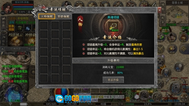 5、幸运项链:该项链的最高升级等级为+3,佩戴后可使全身幸运值增加9点,从而触发最高伤害效果。当项链幸运值达到+3时,会随机赋予元素属性(暴击数值在1到5之间);若对获得的元素属性不满意,可对暴击属性进行清洗操作。