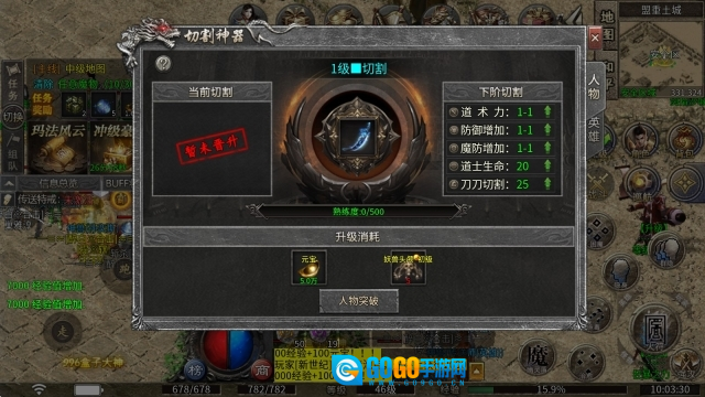 1、切割神器:通过消耗元宝与妖兽头颅来完成晋升,可提升职业专属属性以及切割伤害。