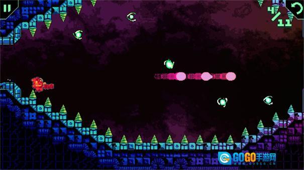 1、极限操作挑战:仅靠两个按键就能完成所有动作——向下射击实现空中推进,向前射击清除前进障碍,极简的操作模式带来极致的挑战体验。