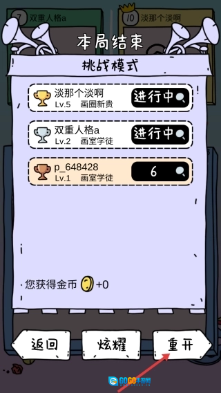 3、对局结束后,点击【重开】按钮,可再次进行游戏。