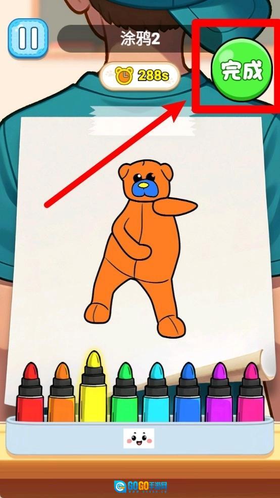 2.绘画过程:在规定时间内使用彩色画笔为图案填色,完成后要点击完成按钮提交,确保作品保存并进入通关判定。
