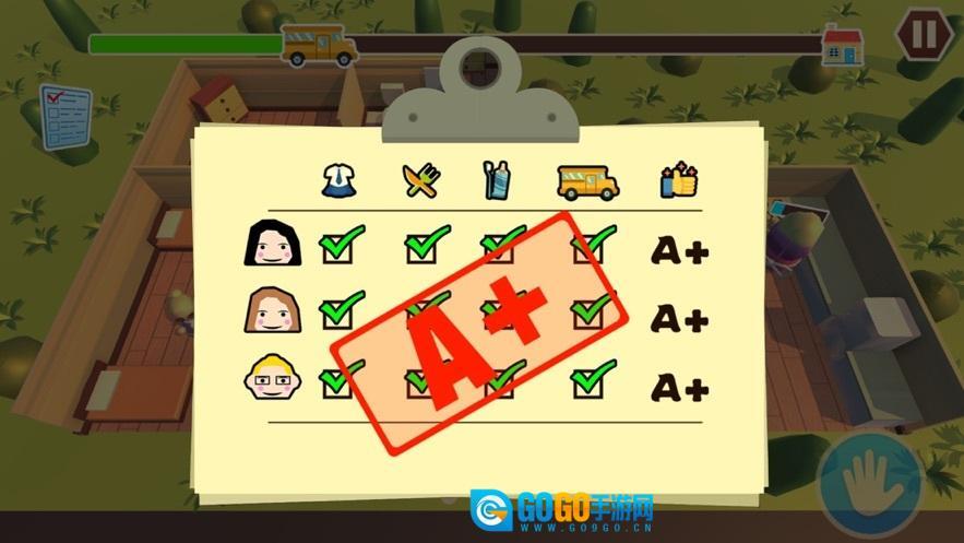 3、时刻留意校车的行驶状态,游戏节奏十分紧张,在校车抵达家门口之前,一定要让几个熊孩子都准备妥当,要是能把三个熊孩子按时送到学校,就能拿到A+的成绩单,成为一名合格的妈妈。