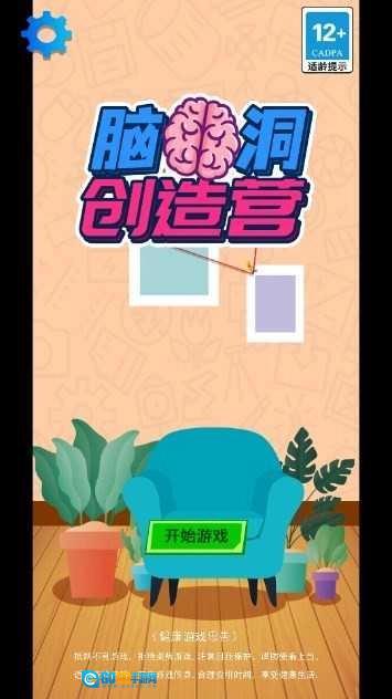2、在手机主屏幕上找到“脑洞创造营”的应用图标,点击该图标进入应用后,选择界面上的“开始游戏”按钮。