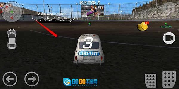 3、可通过左下角的方向盘控制区域来调整方向,右下角则设有刹车按钮和油门按钮供分别操作。