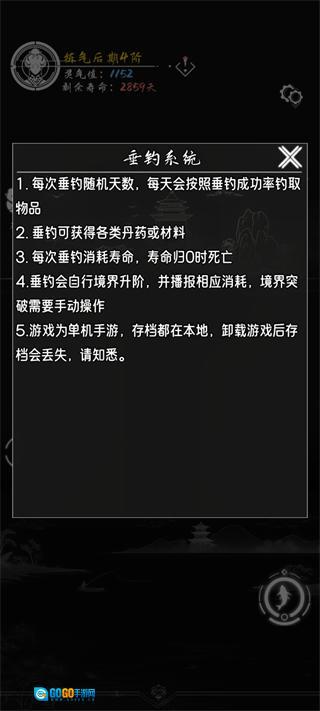 根据基础介绍可知,当前版本中,每次进行垂钓都会得到各类丹药或材料,但垂钓需要消耗寿命;一旦寿命归零,角色就会死亡、坐化,甚至原地消失,届时只能重新开始游戏流程。