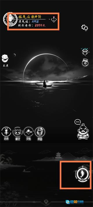 游戏主界面简单明了,大体是一个修士坐在船上钓鱼。