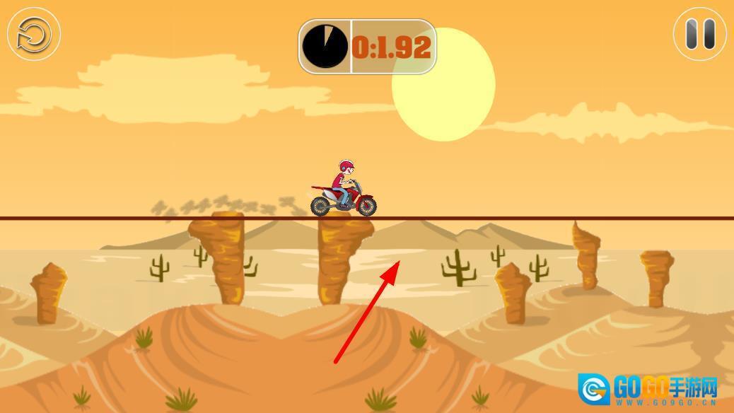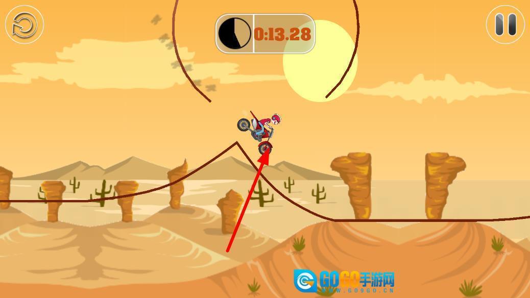 2、行驶过程中,通过屏幕来操控车辆的加速、刹车和重心调整,在遇到斜坡时要把握好时机让车辆跃起,在空中滑动屏幕还能触发翻转、侧翻之类的特技动作。