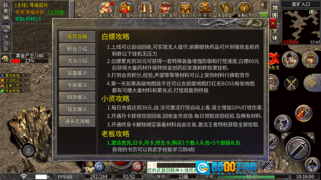 3、本服务器内所有装备都需要通过战斗获取,玩家上线即可获得自动回收、自动拾取功能以及赞助会员权益,帮助大家更轻松地挑战怪物,升级和获取宝物的体验会非常畅快!
