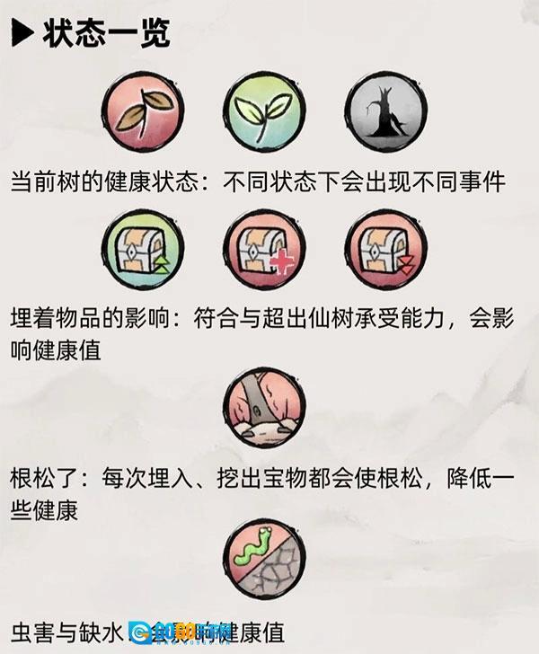 二、功能·禁制:随时间流逝而消耗,消耗完之后树会被破坏/被偷埋宝,前者掉健康值,后者埋宝消失