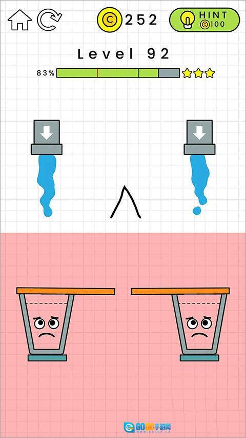 3、依据每一关各异的地形与状况进行画线,用一笔画的方式引导水流注入玻璃杯中,瞧瞧你能挑战至何种程度。