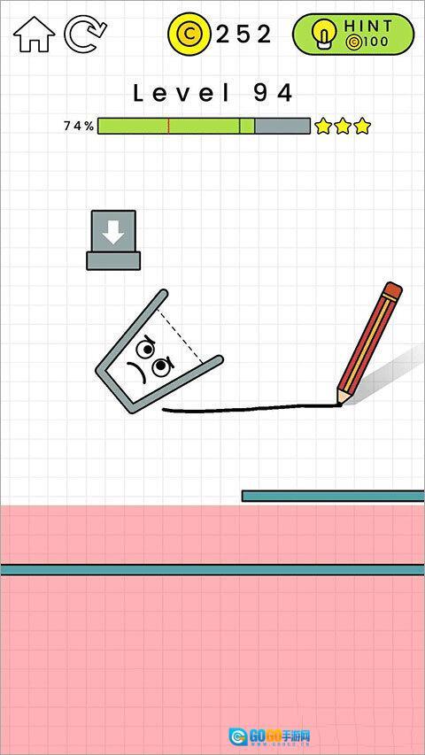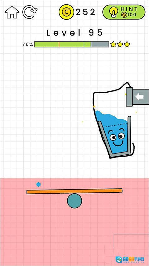 第94关要利用线条使玻璃杯直立从而顺利接水。