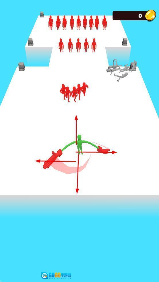 1、橡胶特性独特设定:玩家的手部拥有橡胶般的柔软质感与弹性,移动速度越快,手部拉伸的长度就越长,甚至能弹开弓箭手射出的箭矢。这一独特设定使操作过程充满了不确定性,既增加了游戏的趣味性,也提升了其策略性。